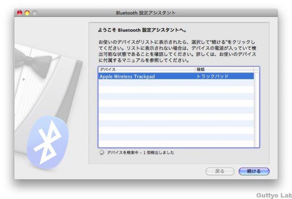 ※接続は簡単。MacのBluetoothをオンにし、Apple Magic TrackPadの横にある電源ボタンを押して待機するだけ。