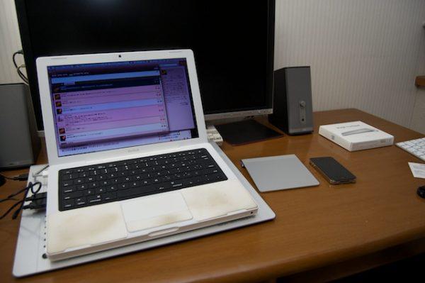このMacBookはLate 2006モデルなので2本指までのマルチタッチしかサポートされていませんでしたが、Apple Magic TrackPadを接続すると見事4本指でのマルチタッチが出来るようになりました。今までSpacesとかを画面の角にマウスポインタを動かすことで使っていたのですが、4本指でなぞるだけで使えるようになったので楽チン!