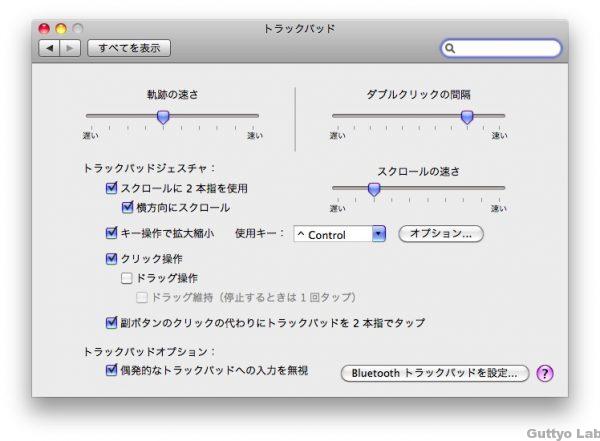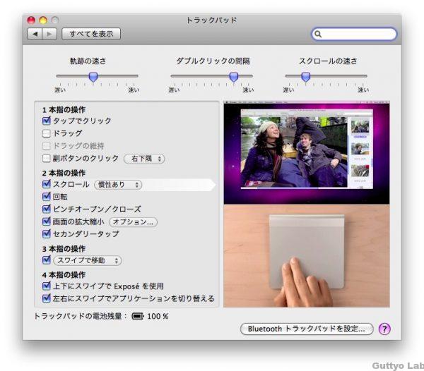 今までの設定画面は左画面でしたが、Apple Magic TrackPadを接続すると右のように変わりました。