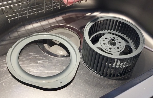 ファンの間に入っていた油汚れも大多数は流水のちからだけで流すことができました。